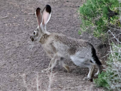 | There are no dangerous animals in San Luis State Park. There are a lot of jackrabbits, cottontails, coyotes (we only hear them), nighthawks (they only sound scary), chipmunks, and mice (way too many mice) are regulars. We occasionally see bull snakes in the park and always see hawks along the highway when we go to town. |